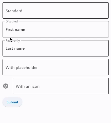tb3 := ft.TextField(label="Read-only", read_only=True, value="Last name"),